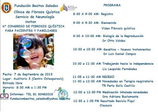 Hoy fué nuestro 6° congreso de Fibrosis Quística para pacientes y familIares, muy lindas las pláticas comenzamos temprano en primer lugar vimos un video en español de la CFF, luego nos habló el Dr. Otto Valdés sobre como pueden ayudar a las familias portadoras de mutaciones de FQ para tener niños sanos.