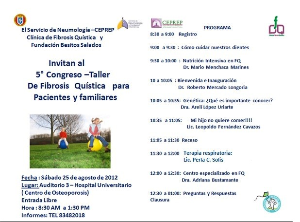 03 Sep curso Taller Fibrosis quistica para pacientes, padres y personal al cuidado En la Primera plática de nuestro curso del sábado 28 de Agosto del corriente el Dr Rodolfo Posadas Valay, Profesor de Neumología… Hace 15 años ver más