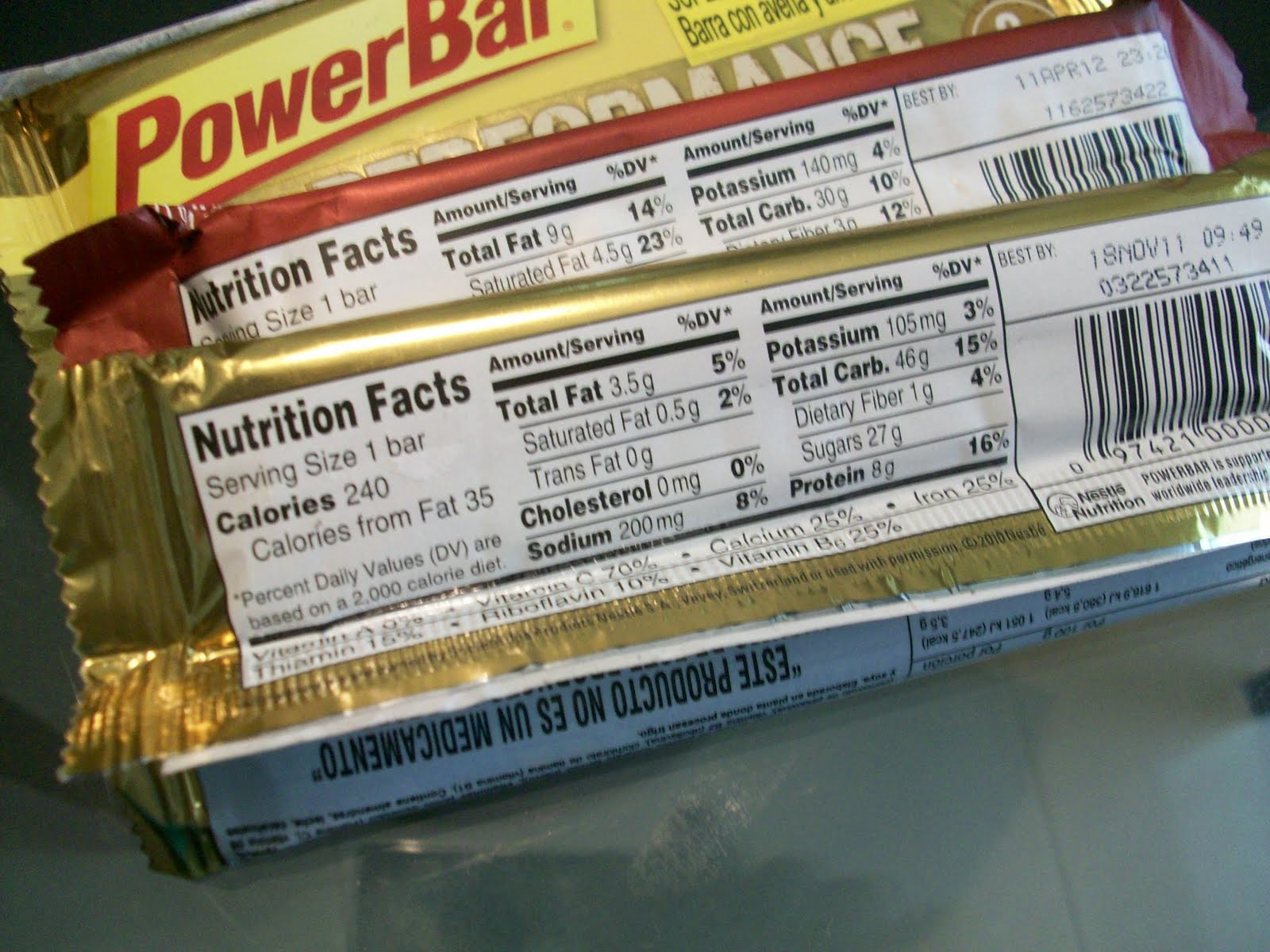Si comemos una barrita PowerBar de 240 calorías más un Fresubin plus sabor vainilla: que aporta 350 calorias en total suman 590 calorías.
